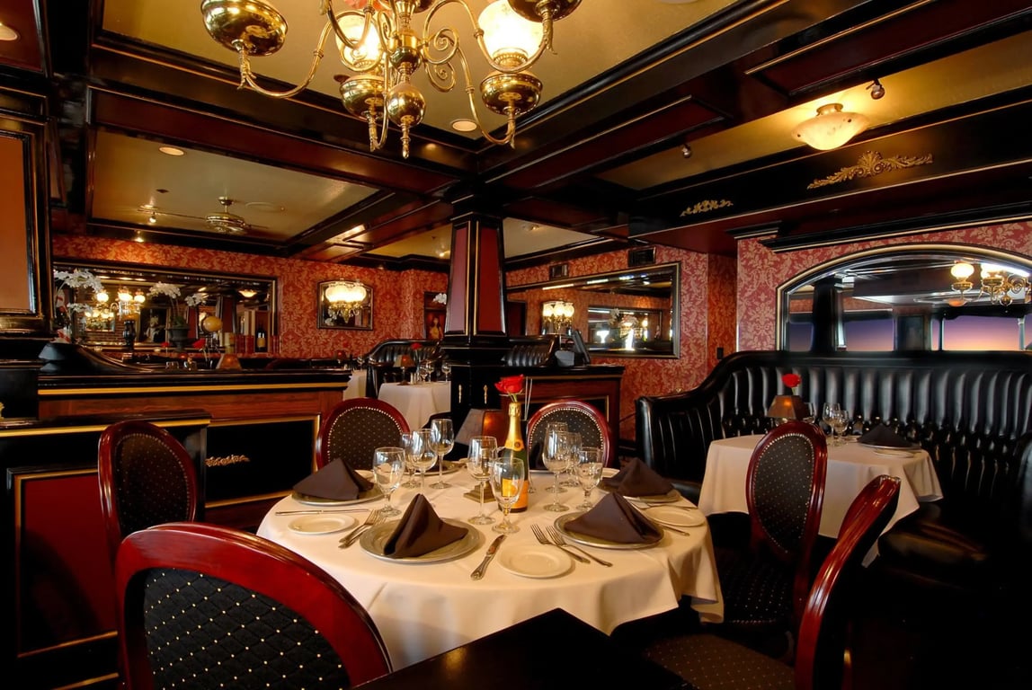 Five Crowns offers an incredible dining experience nestled in a charming Tudor-style building. This iconic restaurant is known for its signature prime rib, Yorkshire pudding, and seasonal dishes, each crafted with meticulous attention to detail. The cozy ambiance, with its fireplaces and elegant decor, adds to the restaurant's timeless appeal.